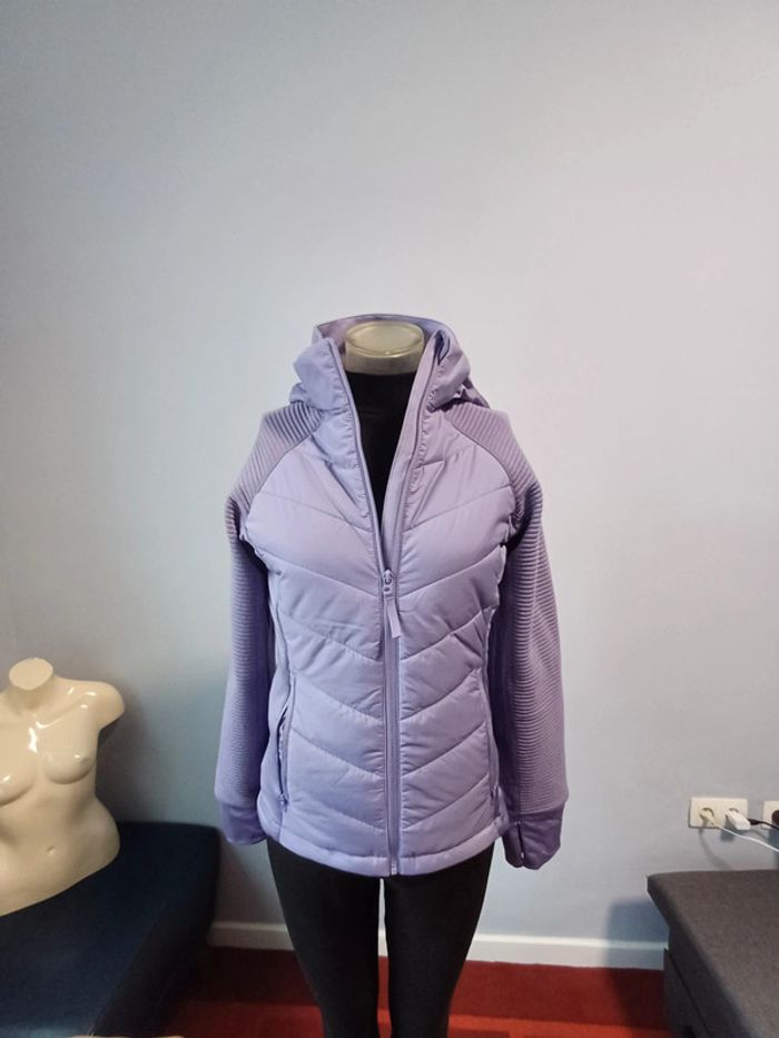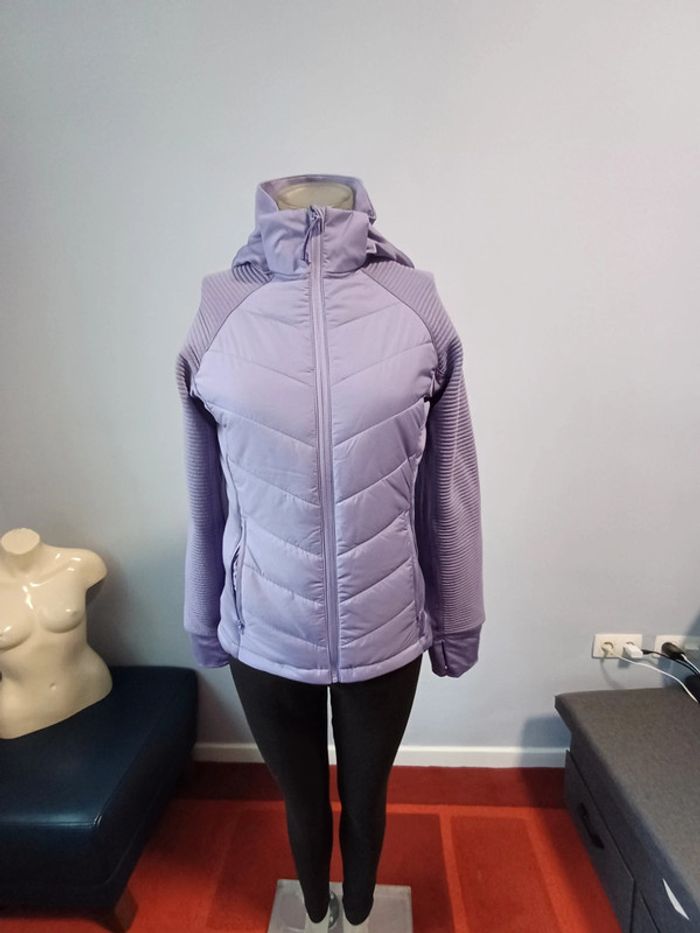 Veste en tissu matelassé avec capuche double épaisseur amovible. Modèle à col droit avec fermeture à glissière surmontée d'un protège-menton qui limite les risques de frottement. Devant et dos matelassés pour rester au chaud. Manches longues avec découpe raglan qui réduit le risque de frictions dues aux coutures. Passe-pouce en bas de manche pour une meilleure tenue et un apport de chaleur au niveau des poignets et des mains. Panneau extensible de chaque côté pour une plus grande aisance de mouvement. Poches sécurisées par zip devant. Base arrondie avec plus de longueur dans le dos pour mieux accompagner les mouvements. Partiellement doublée. Violet claire