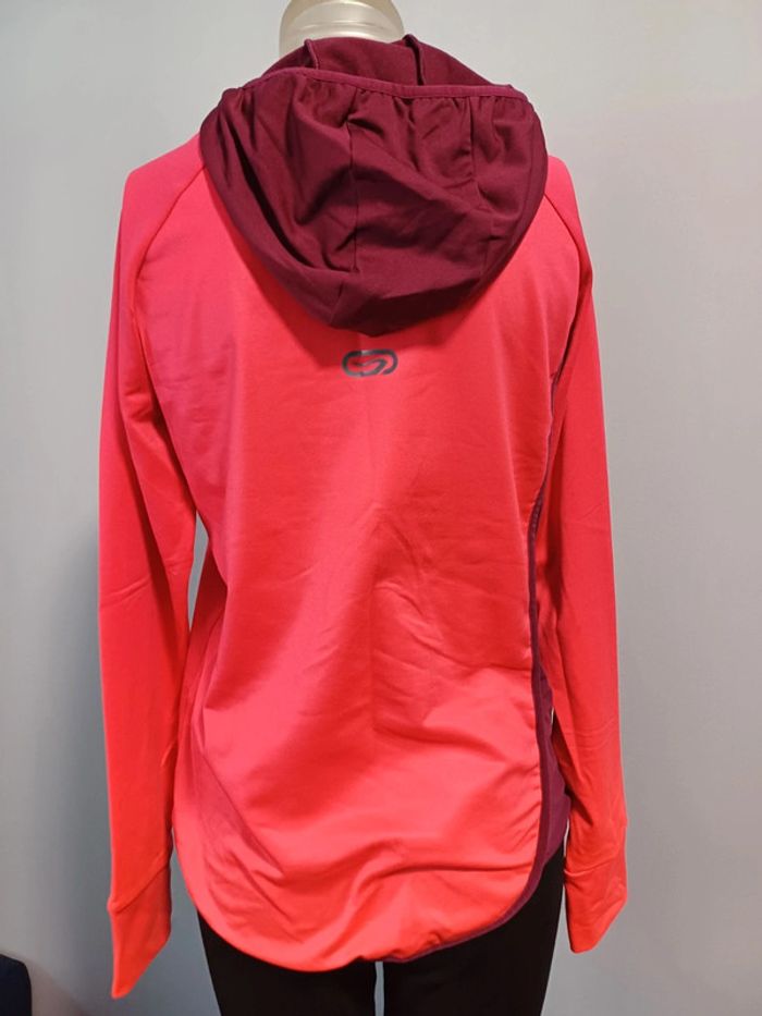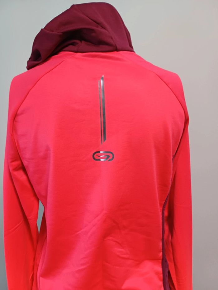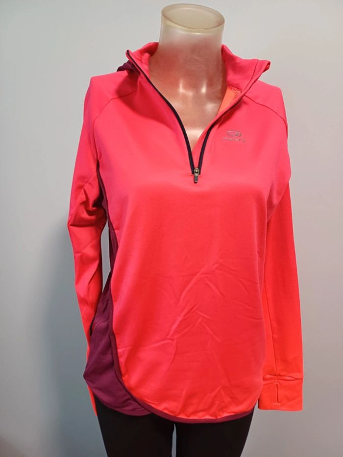 Sweat sport avec capuche. Modèle avec col semi-montant et fermeture à glissière en haut munie d’une tirette . Longues manches terminées par passe-pouce.