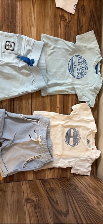 Le lot est composé de 1 pantalon noukies 1 pantalon à pieds en 56 cm 1 tee shirt à manches courtes Bébérêve 1 haut à manches longues influx