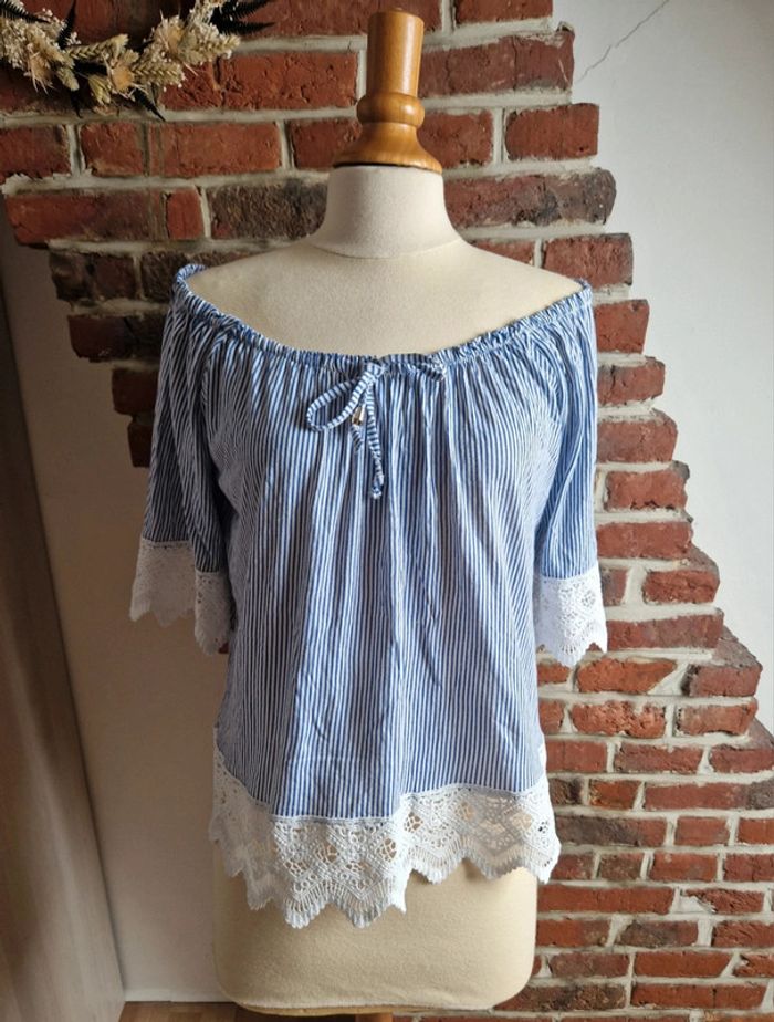 Haut à rayures et dentelle bleu et blanc 38/40 💮