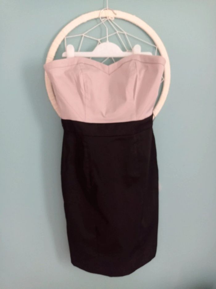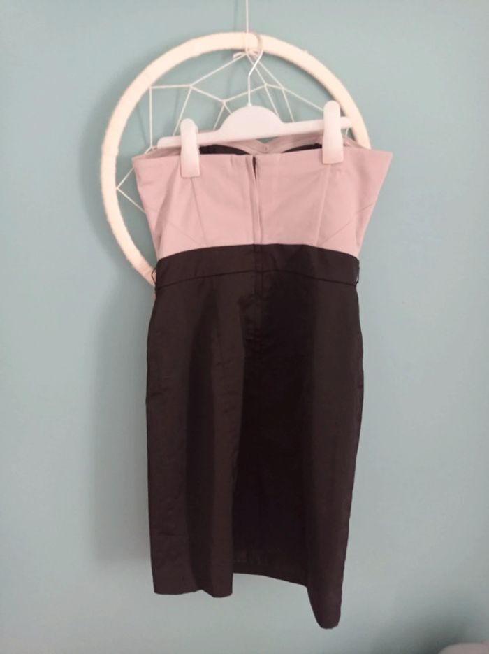 Très joli robe bustier Morgan ,beige et noir , fermeture éclair dans le dos ,le bustier tient très bien grâce à ses bandes intérieur voir photo ,bonne qualité très peu utilisé ! Canon !