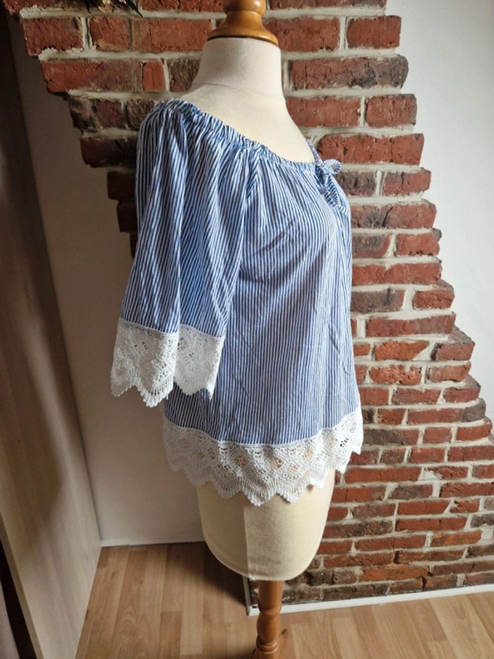 Haut à rayures et dentelle bleu et blanc 38/40 💮 - photo numéro 5