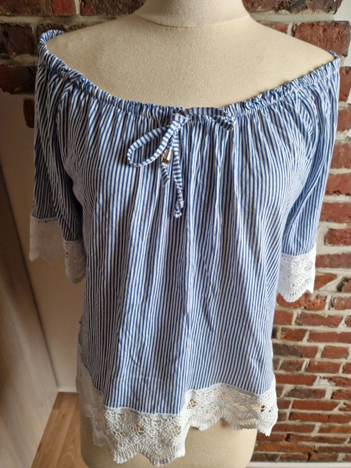 Haut à rayures et dentelle bleu et blanc 38/40 💮 - photo numéro 1