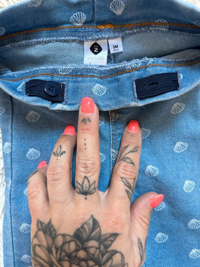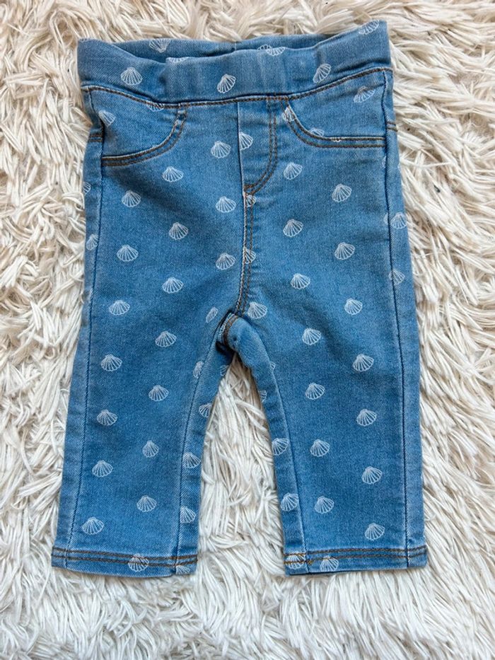• jegging en jeans motif coquillages Taille réglable avec élastique Très bon état Taille 3 mois #sarahpointmodebebe #sarahpointmode3mois