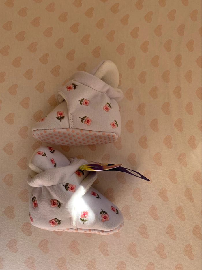 Chaussons fleuri Neuf avec étiquette Taille 0-6 mois #sarahpointmodebebe