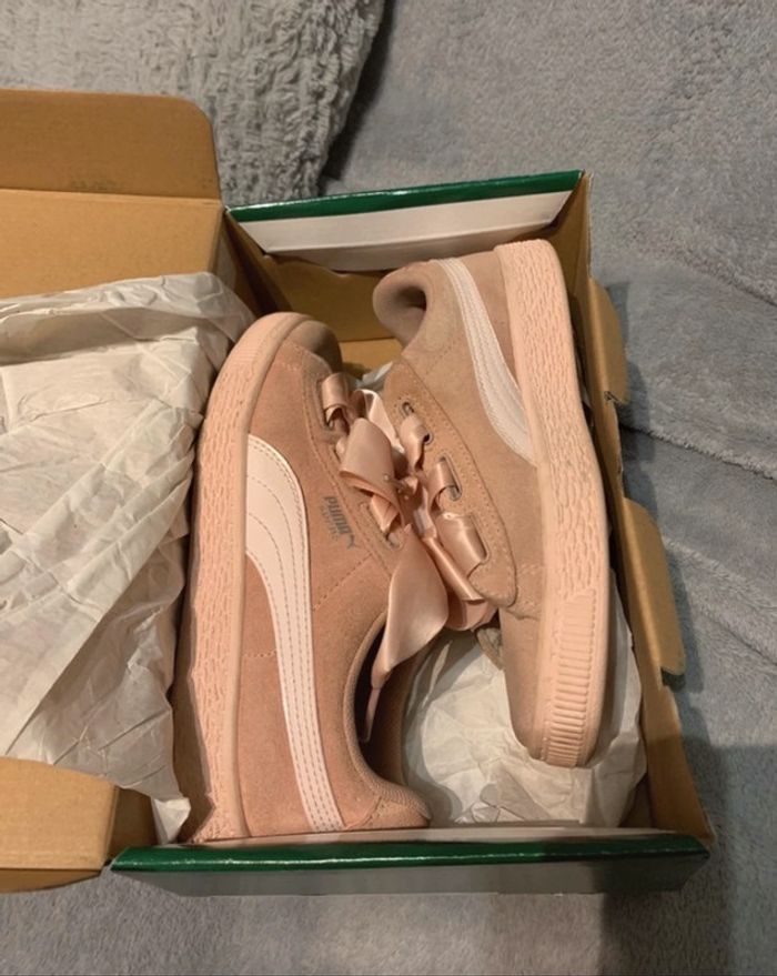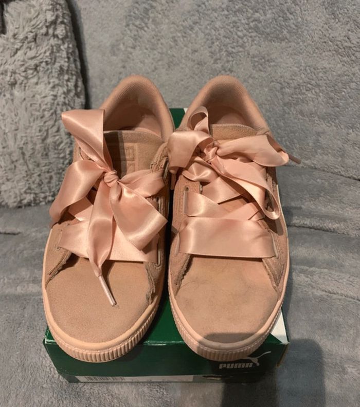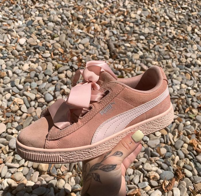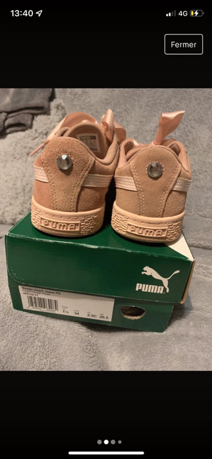 • Sneakers puma heart avec sa boîte d'origine de couleur vieux rose très bon état , aucun trous ni déchirure quelque légères "traces" visible sur les différentes photos semelles impeccables taille 34