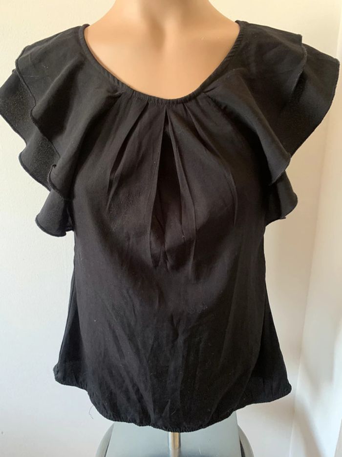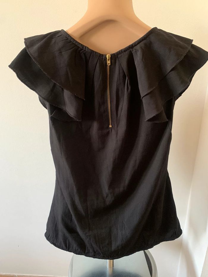 • Blouse noir à volant taille S avec petite fermeture dans le dos