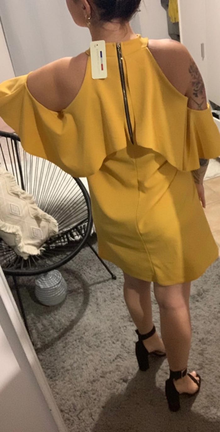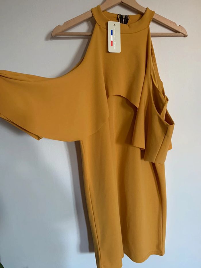 • Robe moutarde Chic - Made in France neuve avec étiquette Taille Unique mais correspond à un S/M manches qui peuvent être mises ou non (voir photo )