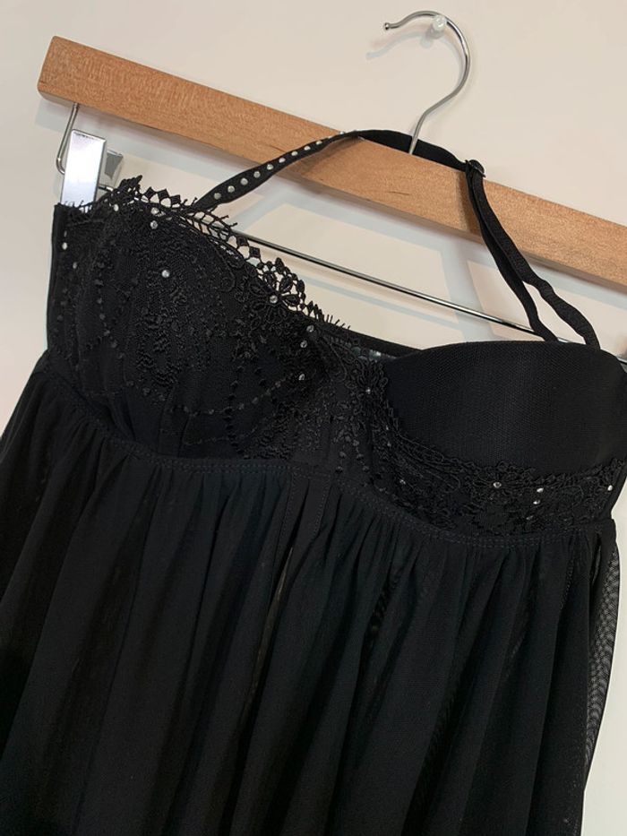 • Déshabiller noir matière légère et fluide . Une attache avec strass amovible . Neuf juste laver. taille S lingerie haut de gamme ⚠️ Aucune photo porté ne sera faite !!!