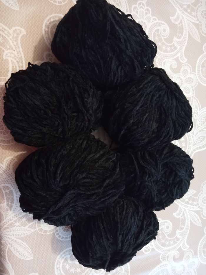 Lot de 6 Pelotes "Velours" Noir uni - Pelotes Neuves - photo numéro 1