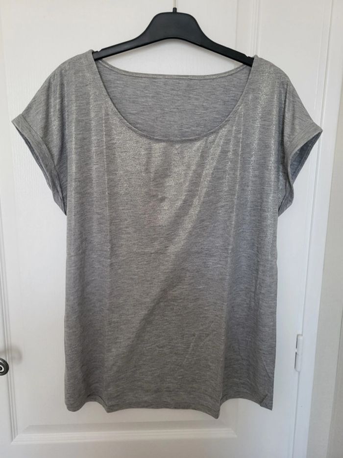 T-shirt gris argenté camaïeu Etiquette coupée mais il s'agit d'une taille XL (voir mesures sur dernière photo) #SILVVêtementsFtXL