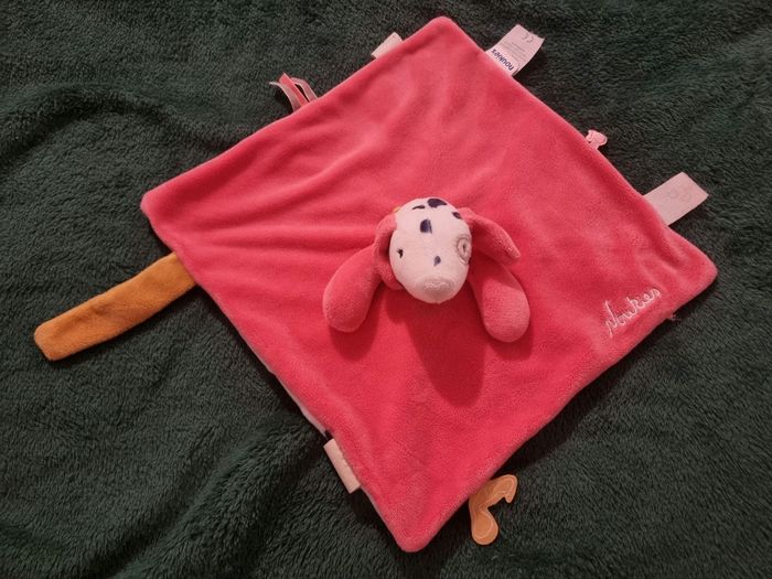 Doudou Noukie's Rose fuchsia pois bleu Amy et Zoé Doudou plat Chien Amy & Zoé rose blanc à pois NOUKIE’S