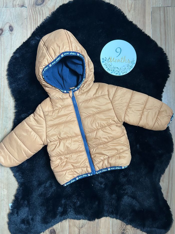 Doudoune camel à capuche Épaisse et chaude, comme neuve 9 mois 👍