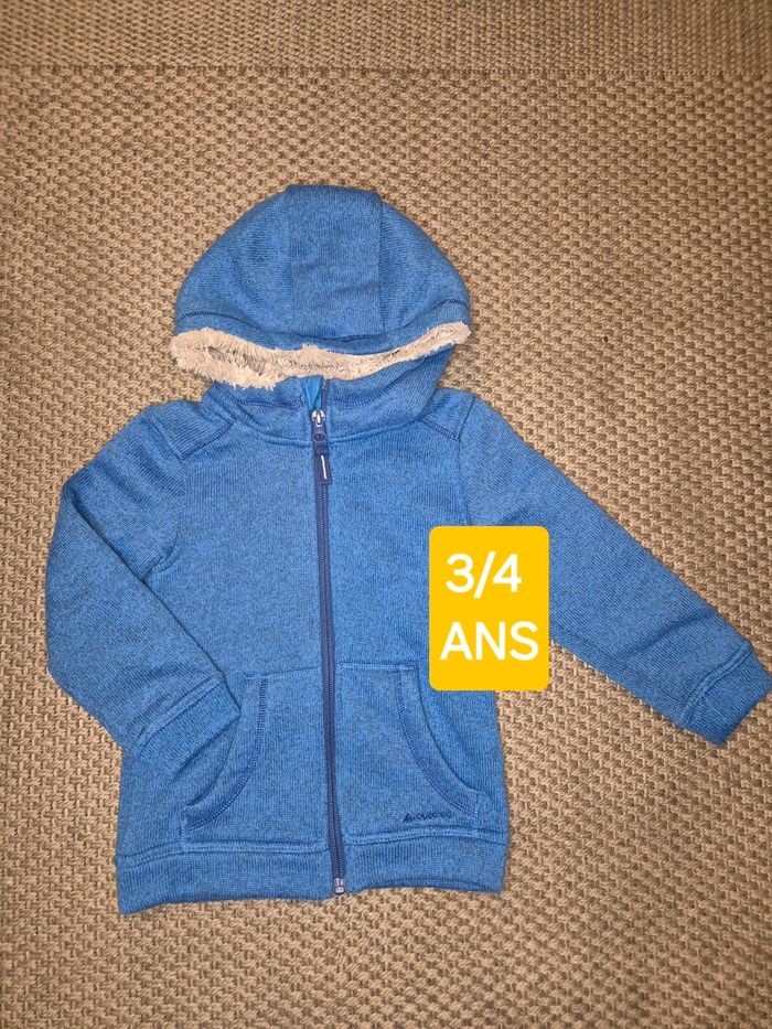 Très bon état. Intérieur polaire. Capuche bien chaude. Taille plutôt 4 ans. Pas d'étiquette. Marque quechua