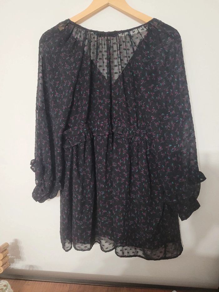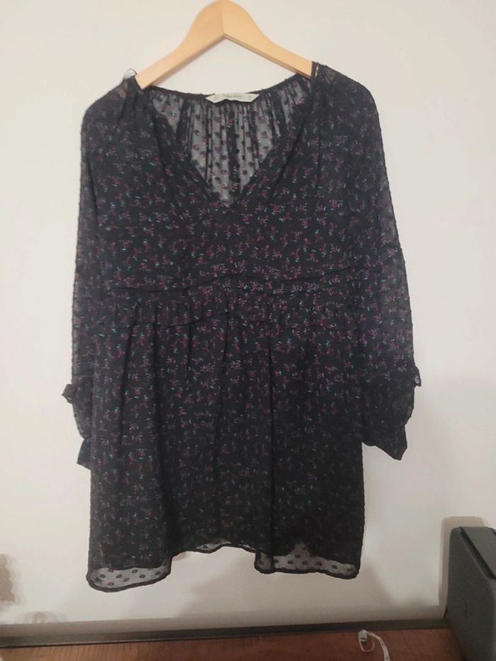 Blouse avec débardeur noir incorporé Marque zara Taille S 100 % polyester Dimensions aisselle à aisselle : 49 cm Longueur 77 cm Très bon état