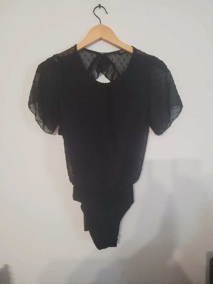 Body dos nu Taille S Composition 100 % polyester Dimensions longueur jusqu'à la entrejambe 70 cm. Tissu extensible Très bon état