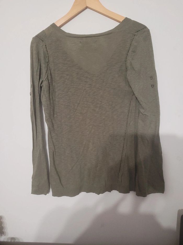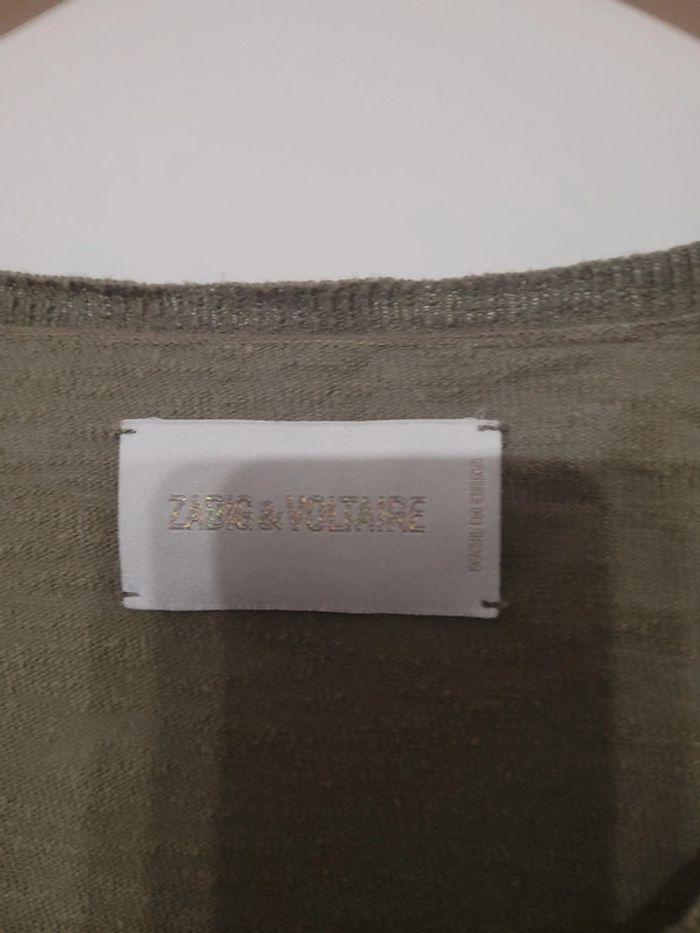 Pull léger Col V Marque zadig et voltaire Taille S Coloris kaki Avec petit boutons fantaisies sur les manches Dimensions aisselle à aisselle : 47 cm Longueur 60 cm Très bon état N hésitez pas à visiter mon dressing. Plus de 500 articles disponibles. Envoi rapide et soigné