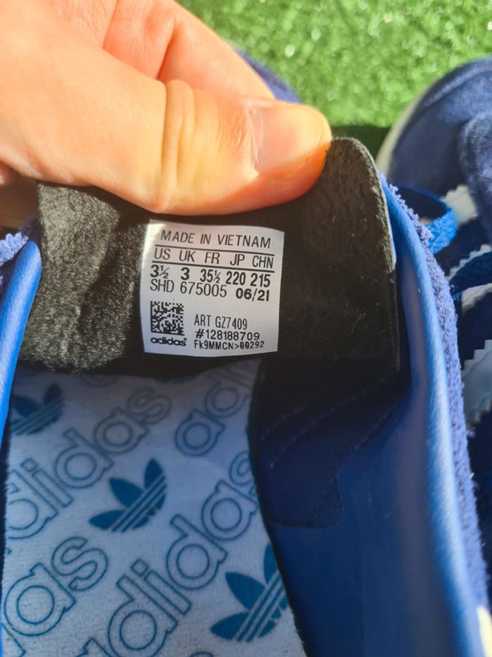 ✨️A VENDRE✨️ ➡️ La paire est nettoyée et désinfectée par mes soins. J'applique également un spray qui préserve le textile et imperméabilise le nubuck contre la pluie et l'humidité. ➡️ Boite d'origine. ⚠️ Ne pas mettre à la machine à laver. ⚠️ Je vous invite à zoomer minutieusement sur chaque photo. Vous achetez ce que vous voyez. 📦 Expédition sous 48h en semaine si paiement avec Mondial Relay et Chronopost. ➡️ Retrouve les autres paires à ta taille en cliquant ici : #SNEAKCORP35 🔔 Abonne toi pour trouver chaussure à ton pied! #ADIDAS #VINTAGE #GAZELLE #OG #BOLD #BUSENITZ #CAMPUS #SAMBA #SUPERSTAR #HAMBURG #SPEZIAL #MUNCHEN #DRAGON #CHAUSSURES #SPORT #SHOES #SNEAKERS #STREETWEAR #COURT #BLUE