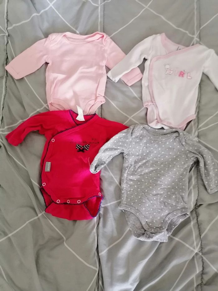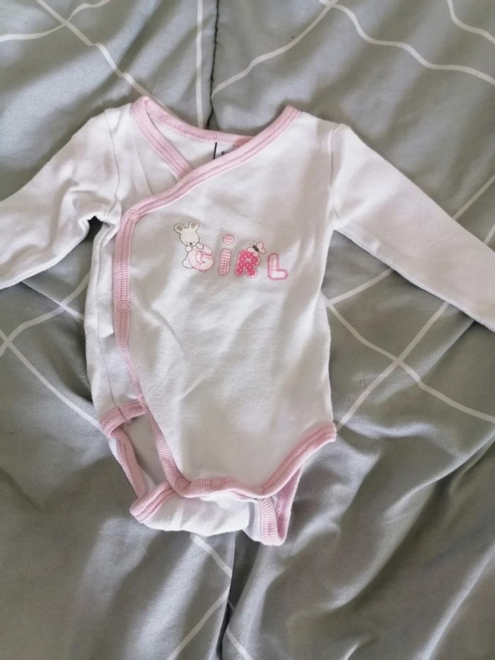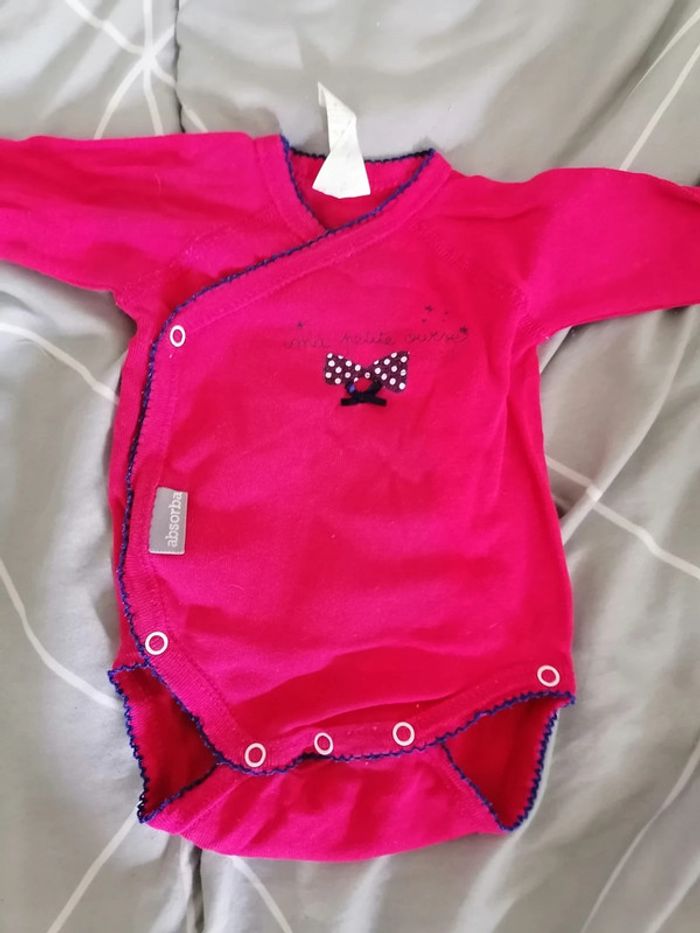 Bodie rose avec noeud, Bodie gris avec pois blanc, Bodie rose claire, Bodie écriture GIRL taille 1 mois