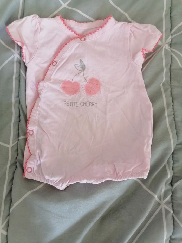 Combi-short fille 1 mois, en rose avec dessin cerises.