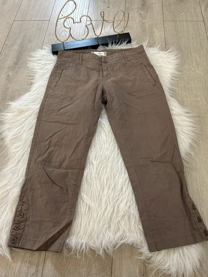 Très beau pantacourt beige marron 🥰 taille 36 cache cache Légèrement décousu au niveau de la ceinture mais c’est discret quand on le porte