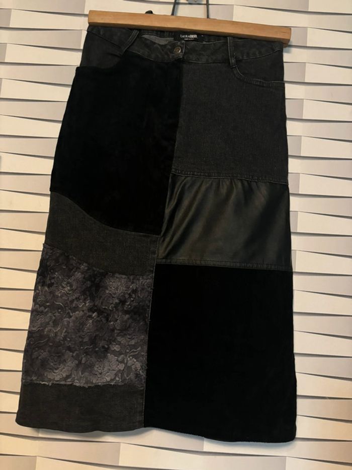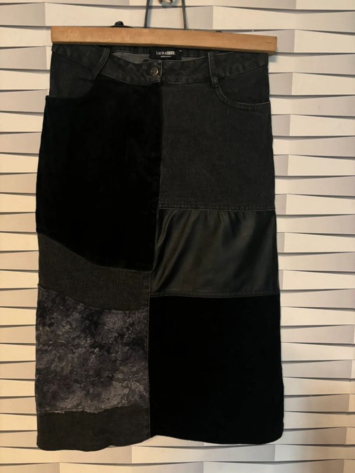 jupe crayon en jeans patchwork multi matières XS - photo numéro 2