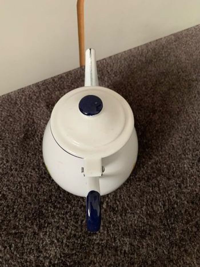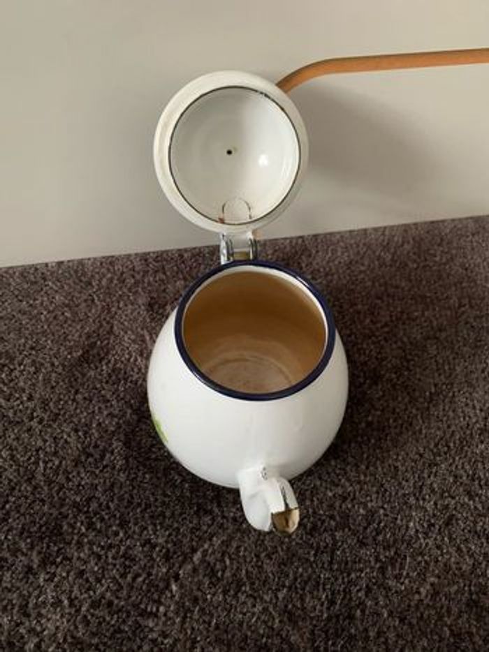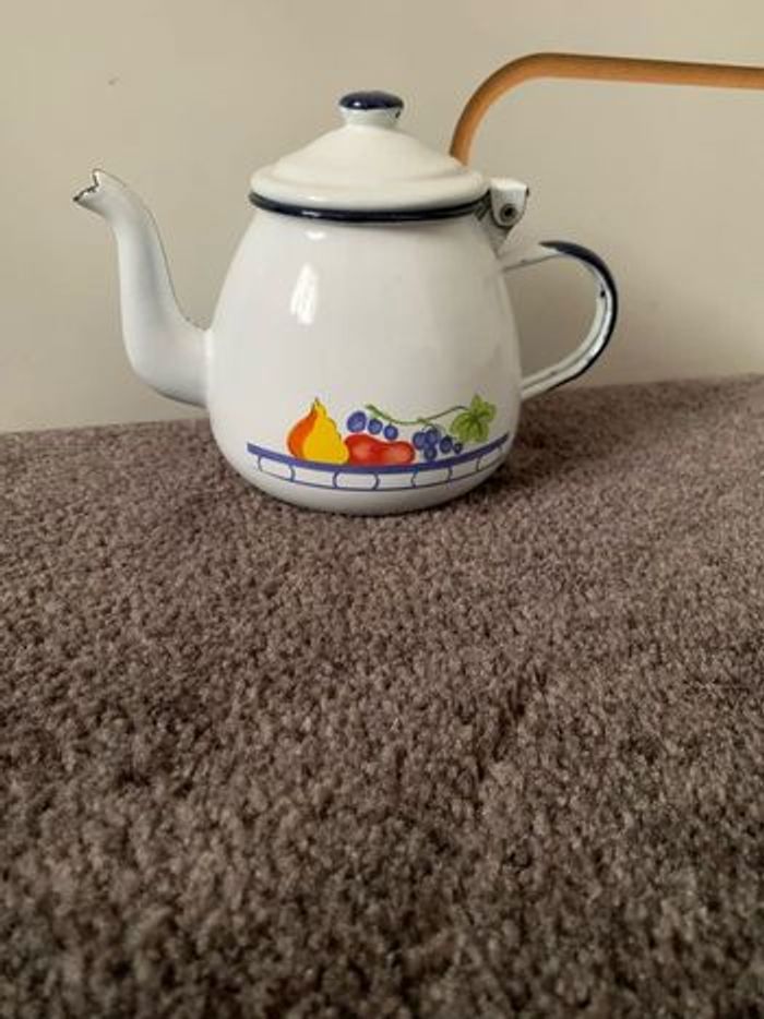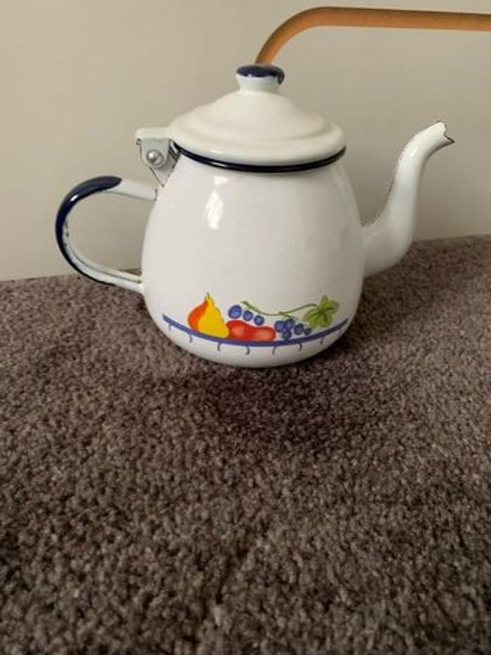 Théière à l’ancienne en métal émaillée, environ 17cm de hauteur