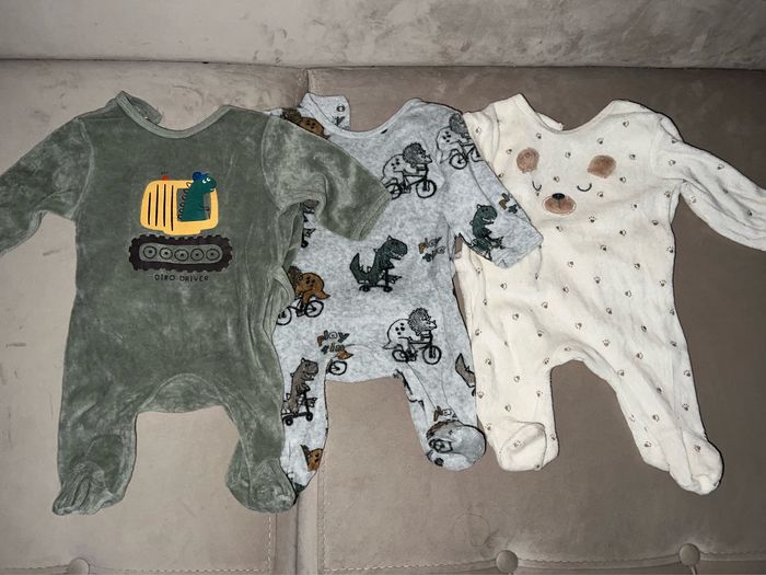 Un lot de 3 pyjamas taille 1 mois en très bon état.