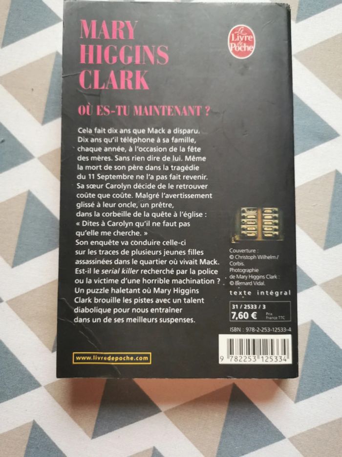 Bonjour 😊 Livre de poche. Oui es tu maintenant ? Mary Higgins Clark. État satisfaisant.