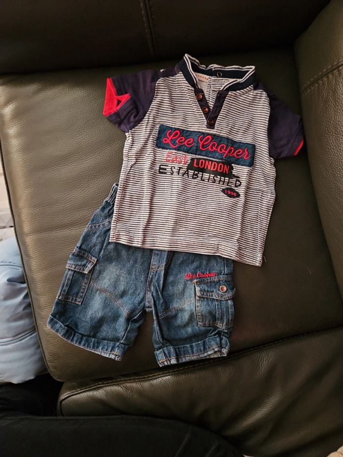 Ensemble garçon 12 mois Lee Cooper Short jean taille élastique et tee-shirt manches courtes Peu porté - Très bon état Réduction par lots activées %%%