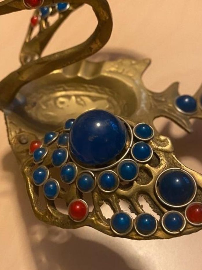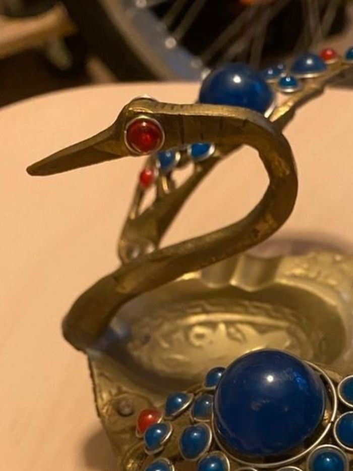 Cendrier en cuivre Cendrier de culture italienne Cendrier représentant un cygne en cuivre décoré de la culture italienne. -Longueur du cendrier : 19 cm -Largeur du cendrier : 15 cm