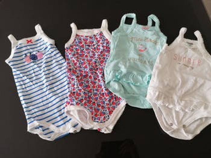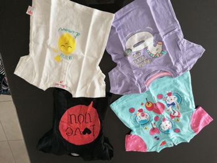 1 lot de bodies, très peu porté et un lot de t-shirt, très peu porté. Taille 6 mois.