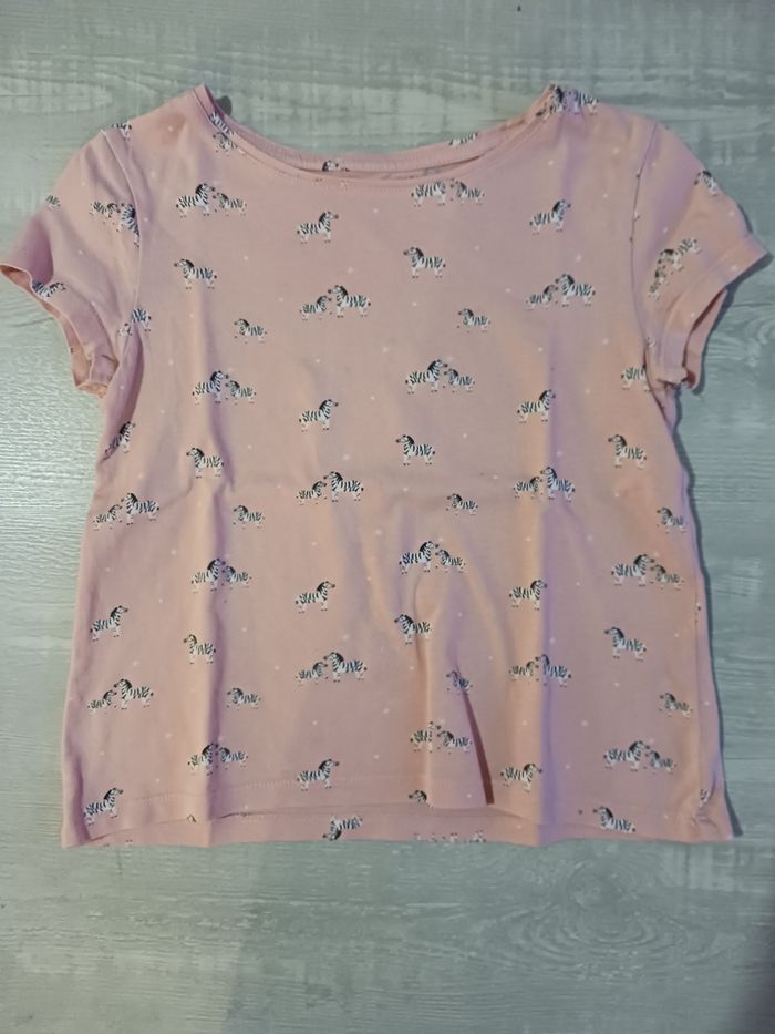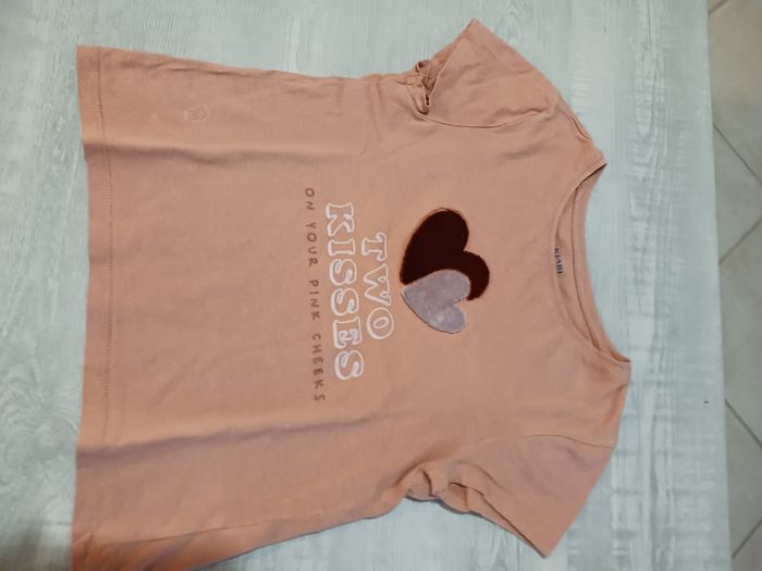 Vends lot tee-shirt manches courtes En très bon état 1 couleur vert unis 1 rose avec des zèbres 1 couleur corail avec coeurs