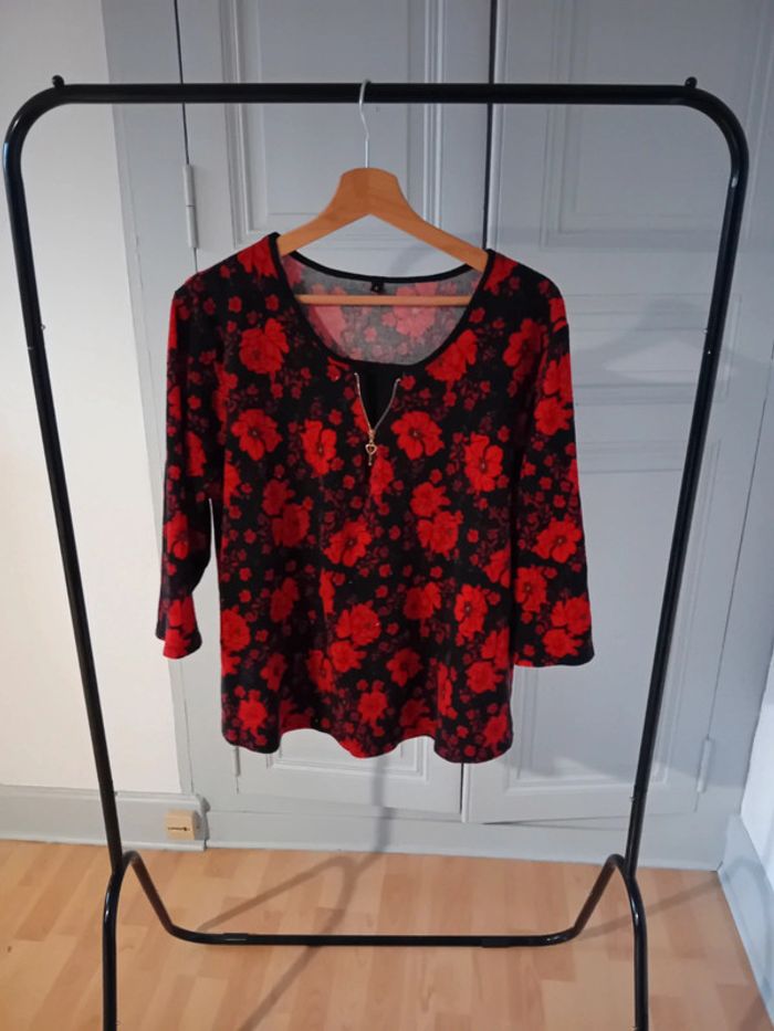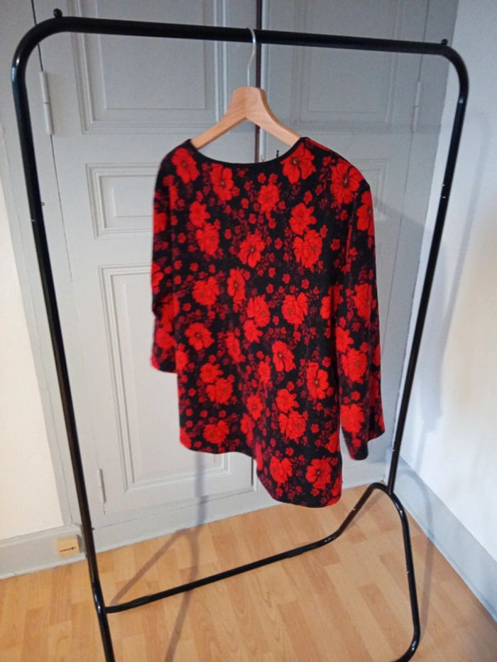 Pull vintage fin à motifs fleurs rouges, taille 6: Dimensions: longueur 63 cm, largeur épaule 46 cm, largeur aisselles 50 cm. Bon état #pullfinvintage #pullimpriméfleuri #pullimprimefloral #pullfinrouge #vintage #vintagestyle #vintagelook #hiver #maelyavintage #maelyatxxl