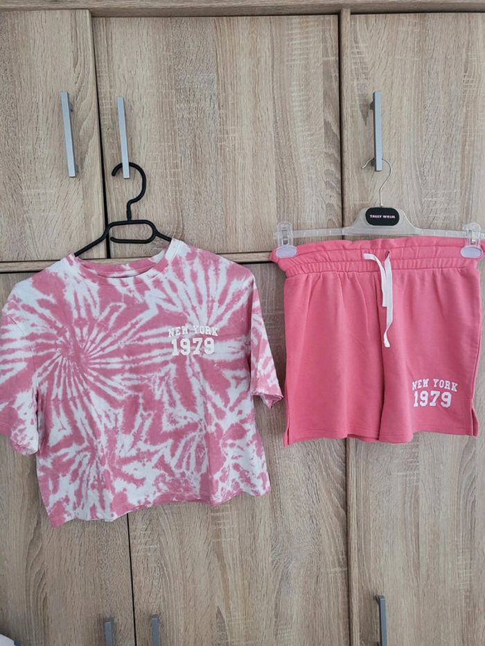🪷Ensemble tee-shirt et short 🪷tee-shirt tie&die 🪷short rose 🪷Très bon état 🪷Taille XS ado soit 14ans #cindyadoxs