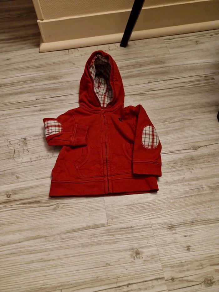 Sweat à capuche 12mois ( la languette de la fermeture éclair un peut de couleur est partie voir la photo). N'hésitez pas à venir me voir en privé pour me faire une offre ou proposer un prix pour un lot.