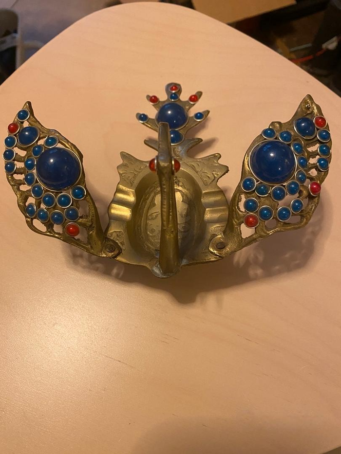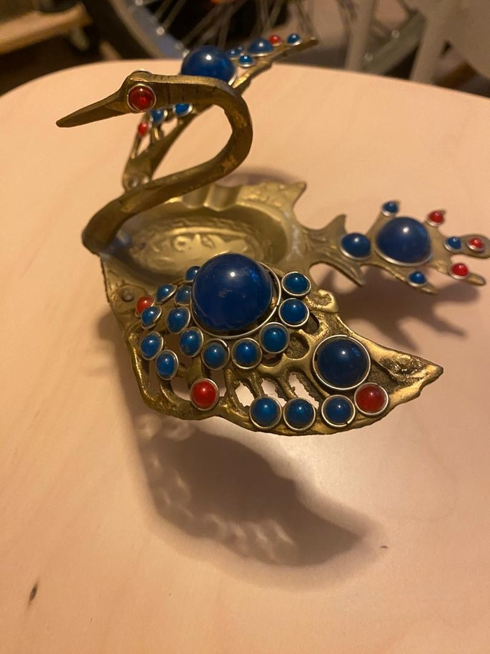 Cendrier en cuivre Cendrier de culture italienne Cendrier représentant un cygne en cuivre décoré de la culture italienne. -Longueur du cendrier : 19 cm -Largeur du cendrier : 15 cm