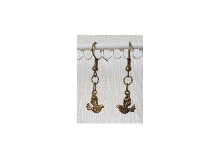 Boucles d’oreilles. Boucles d’oreilles oiseaux couleur bronze. Longueur totale : 3,2 cm Longueur hors crochet : 1,4 cm Longueur de l’oiseau : 0,9 cm En très bon état. Fait main. 2€. #vero38110bijoux
