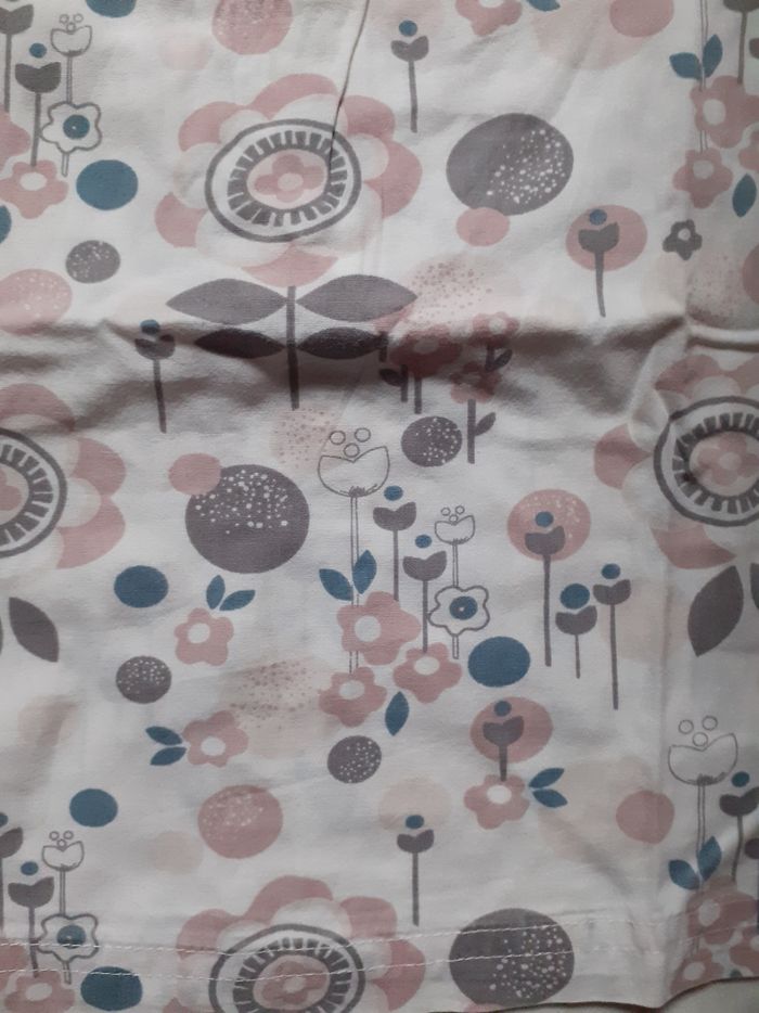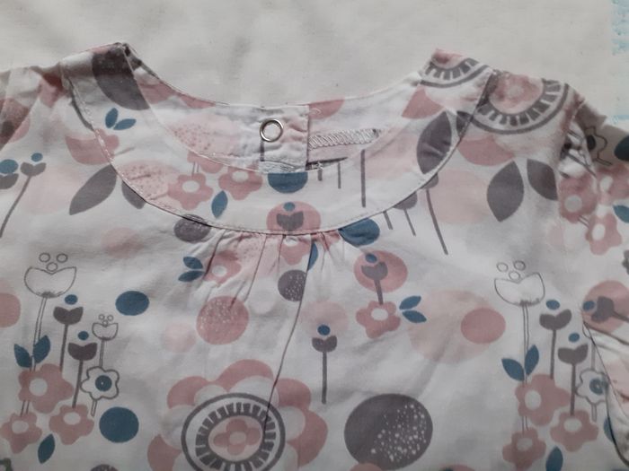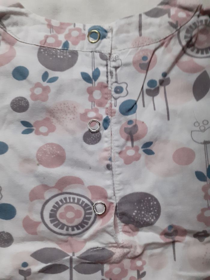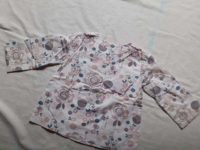 Blousecblanche motif fleurs rose, gris et bleuté 18 mois