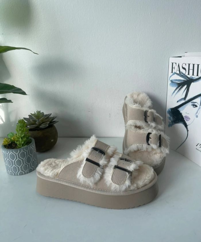 Mule beige compensé en taille 36 En synthétique Peut porté à l’intérieur ou extérieur tendance