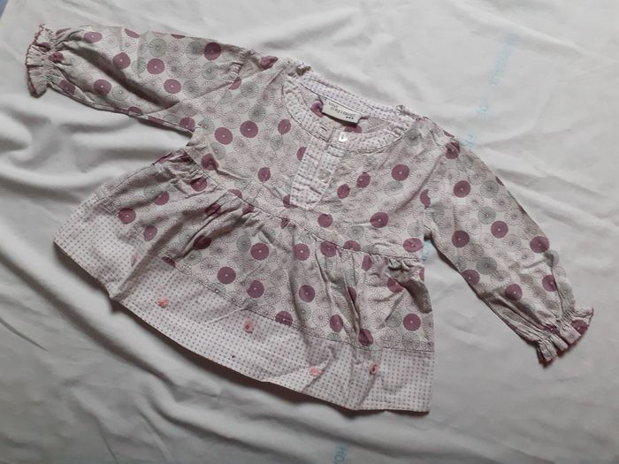 Blouse crememotif fleurs bordeaux, crème et gris 18 mois
