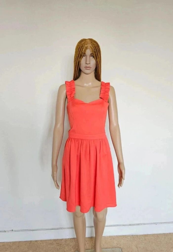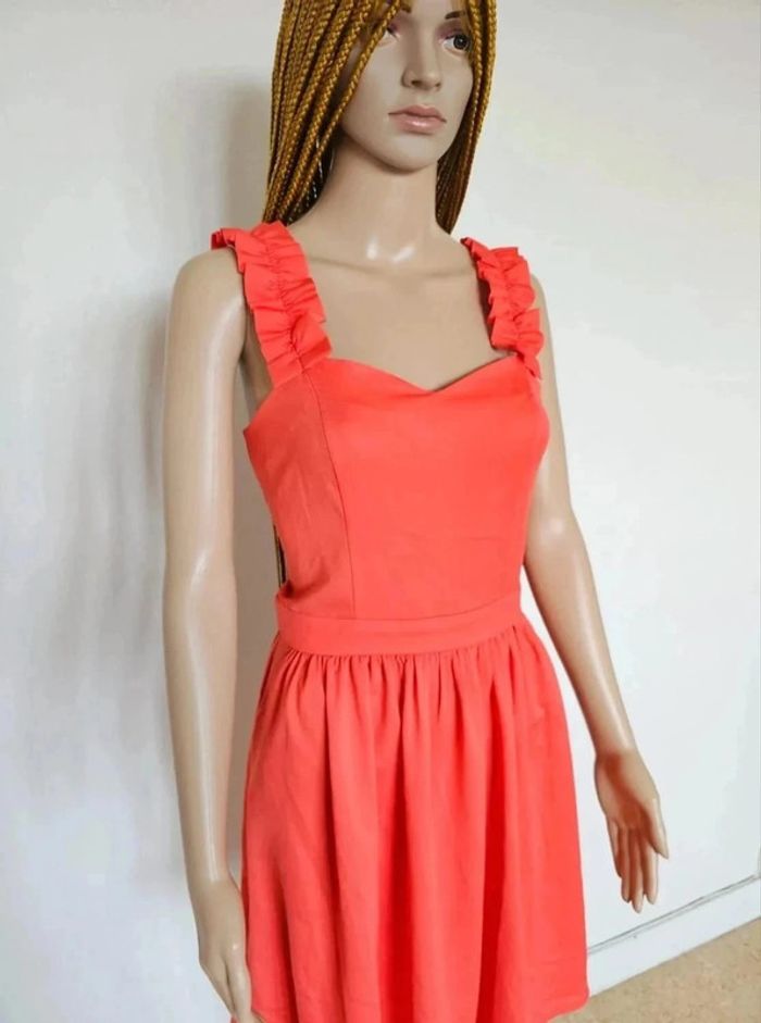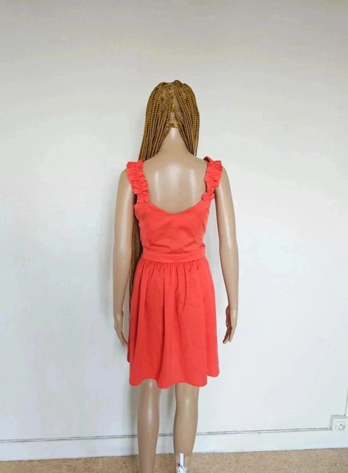 🎀 Robe corail évasée 🎀 Élégante et originale avec ses bretelles 🎀 Quelques mesures: aisselle à aisselle plat 46cm, longueur 68cm 🎀 Jamais portée 🎀 Neuf achetée 59euros99 🎀 Réductions sur lots activées #adelinelglsfemme38M C1
