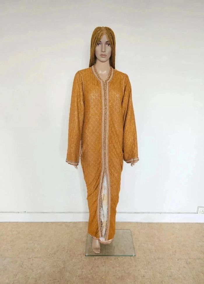 🎀 Ensemble caftan robe et sous robe 🎀 Sous robe fleurie gold 🎀 Robe moutarde 🎀 Quelques mesures: aisselle à aisselle à plat 50cm, longueur 142cm 🎀 Très bon état 🎀 Réductions sur lots activées #adelinelglsfemme40L C1