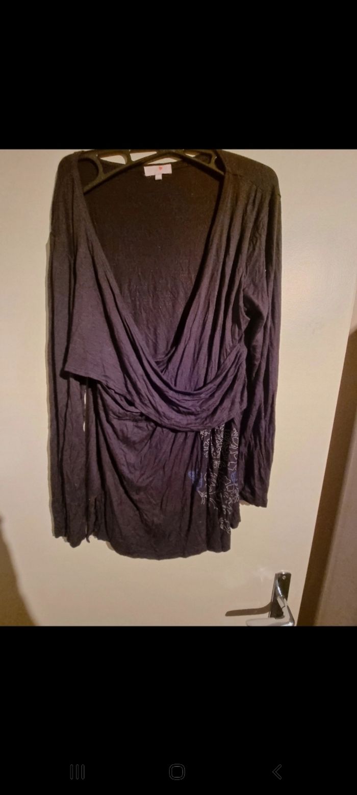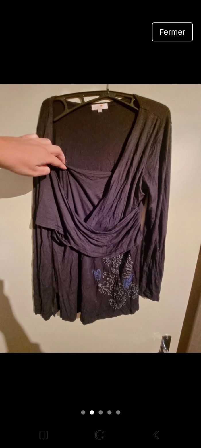Blouse cache cœur ligne maternité 44/46 en bon état noir et bleu