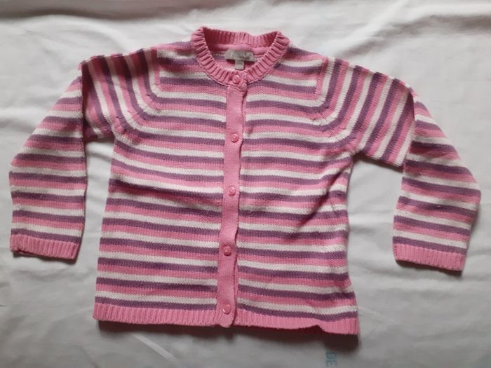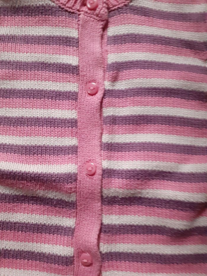 Veste rayée rose, blanc et mauve 18 mois