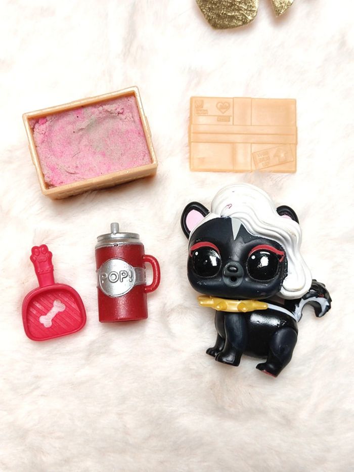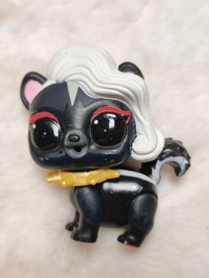 En très bon état. LOL surprise pet série 4 Skunk (putois) avec 3 accessoires et un coffre rempli de sable magique. 🔎 Défaut : couleur un peu partie à l'arrière de la tête à cause du collier (voir dernière photo) #lolsurprisepet #lolsurpriseskunk