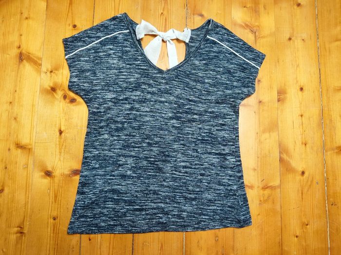En très bon état. Top manches courtes bleu chiné avec liens dans le dos Kiabi taille M (38/40) ⚠️ Je fais des envois via tous les points relais sauf Colissimo !!! #topmanchescourtes3840 #topkiabi3840