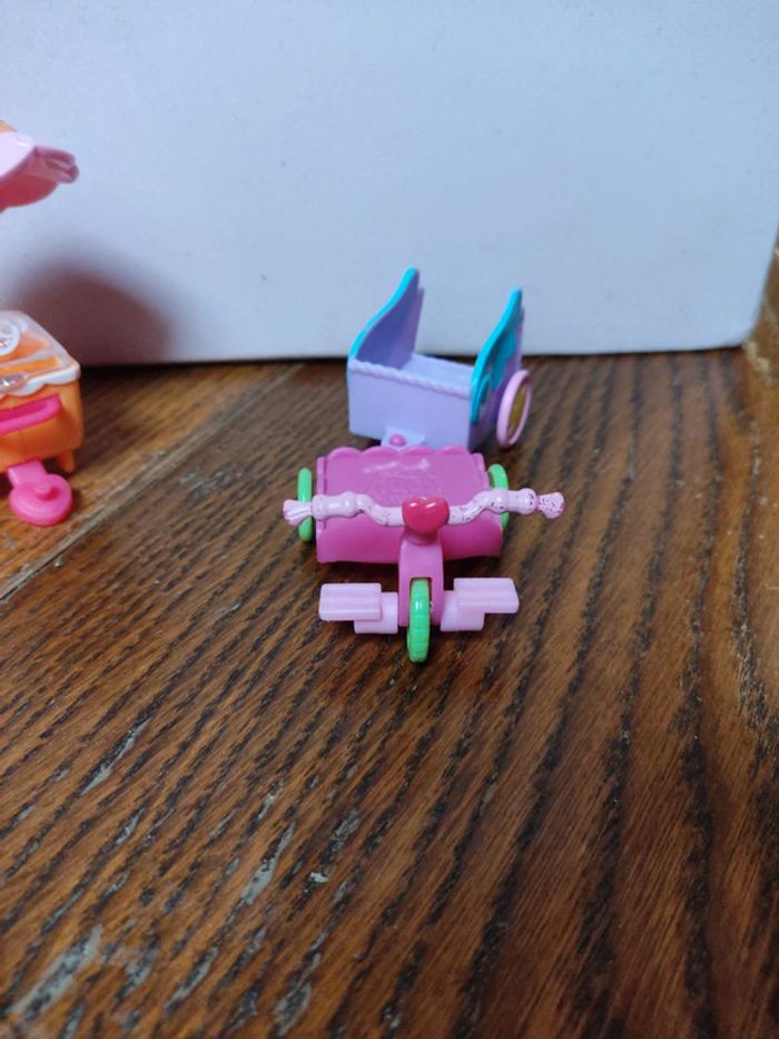 En très bon état général. Lot de deux accessoires My Little Pony, un petit chariot en très bon état, un petit vélo, couleurs un peu parties voir photos. ⚠️ Je fais des envois via tous les points relais sauf Colissimo !!! #mylittlepony #chariotmylittlepony #velomylittlepony