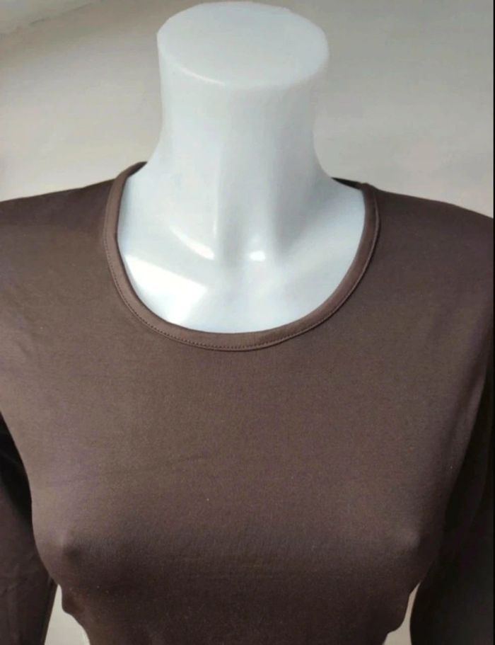 En très bon état. Tee shirt manches longues stretch, effet satiné Coloris marron Marque Promod taille L ⚠️ Je fais des envois via tous les points relais sauf Colissimo !!! #femme40memsdu95 #Teeshirtpromod40