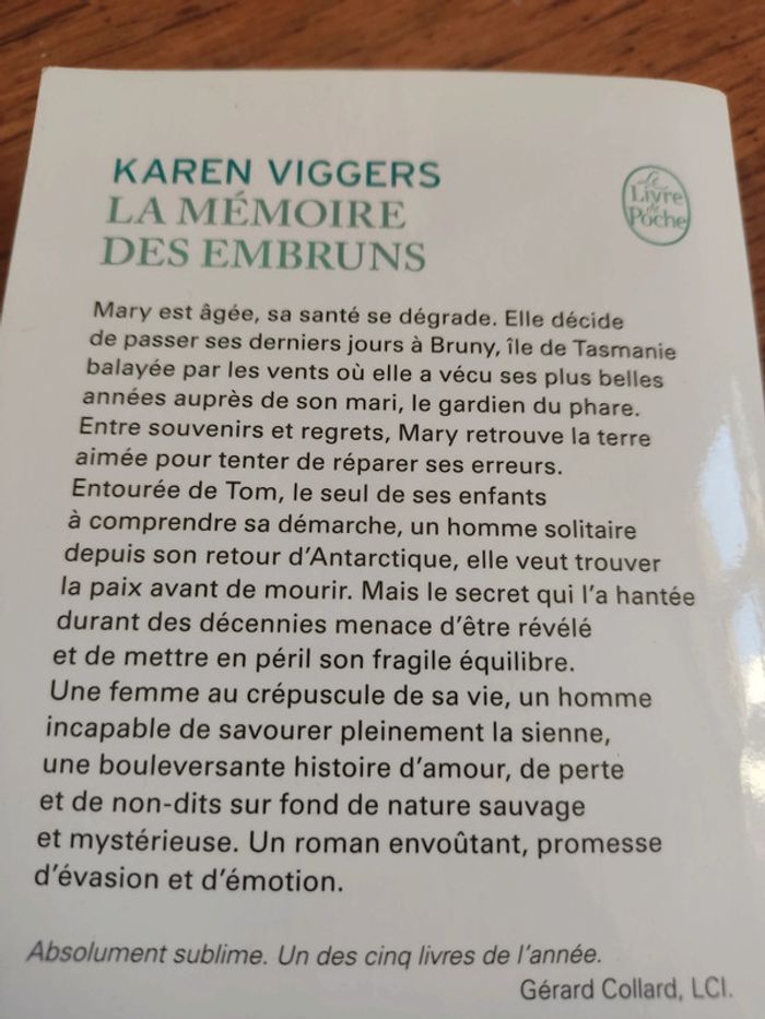 En excellent état. livre de poche "La mémoire des embruns" de Karen Viggers - prix des lecteurs sélection 2016 - prix neuf 8,30 euros ⚠️ Je fais des envois via tous les points relais sauf Colissimo !!! #livredepoche #karenviggerslamemoiredesembruns